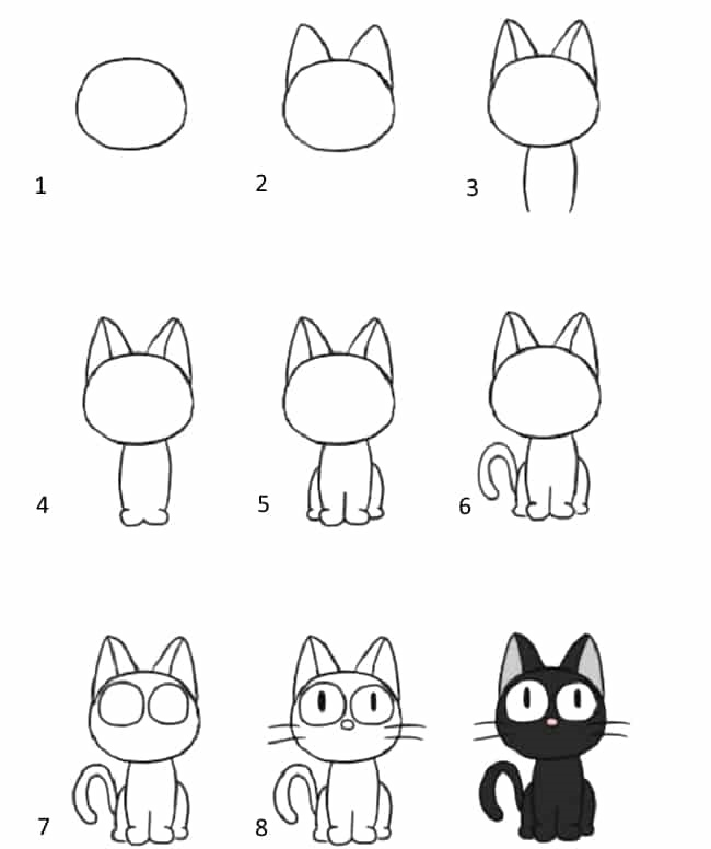 Цей покроковий план малювання кошеняти здається дуже легким. Для цього потрібно лише кілька хвилин. На завершення у вас вийде миле кошеня.